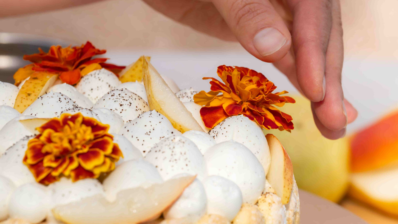 Fleurs fraîches comestibles, pochages délicats, fruits de saison, pralinés maison, crèmes infusées : tout est pensé pour vous offrir un moment unique.