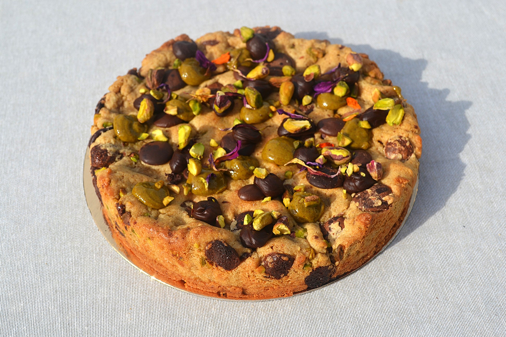 éclats de pistaches - praliné & pâte de pistaches maison - gel chocolat noir Inaya 65%